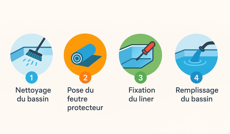 Le liner est une membrane souple en PVC, parfaitement étanche, qui tapisse l’intérieur de votre piscine. Il s’adapte à la forme du bassin et assure une barrière hermétique entre l’eau et la structure béton.