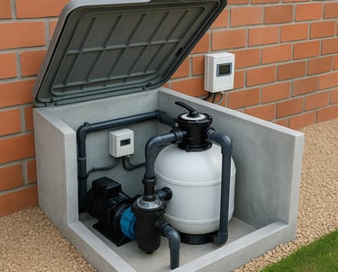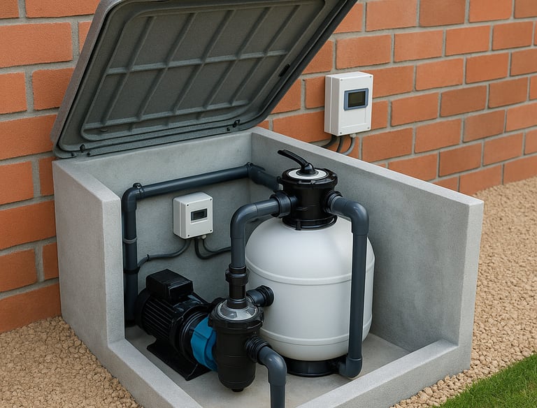 Le local technique regroupe tous les équipements essentiels au bon fonctionnement de votre bassin :