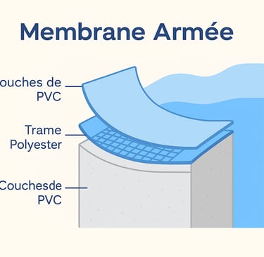 Offrez à votre piscine une étanchéité renforcée et un design exceptionnel grâce à la membrane armée PVC 150/100e. Le choix idéal pour un bassin durable, élégant et personnalisé.